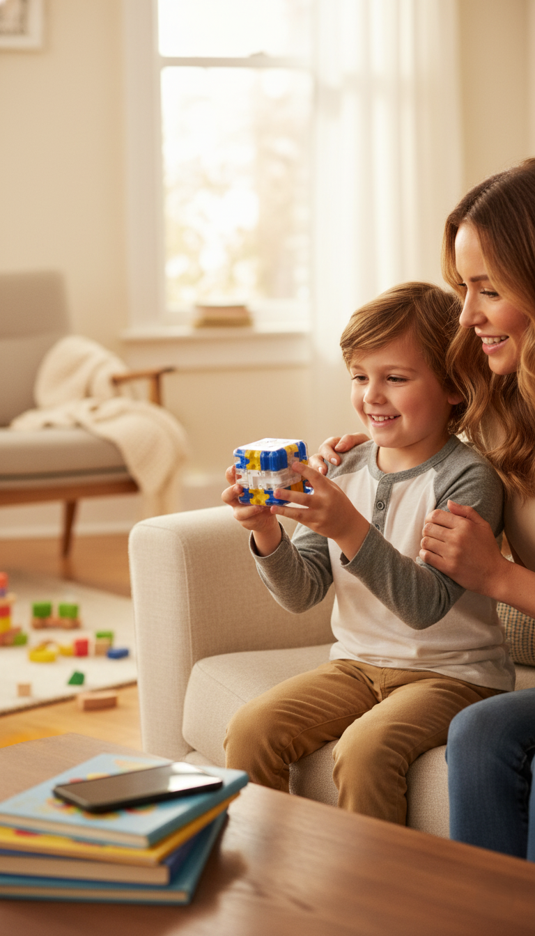 "D'habitude, éteindre la tablette c'est le drame assuré, avec cris et pleurs. J'ai testé de lui donner le BallixCube juste au moment de lui retirer l'iPad. Résultat ? Silence total. Il a été immédiatement captivé par la bille. C'est la première fois qu'il accepte de lâcher l'écran sans faire une crise. Rien que pour ça, merci !"